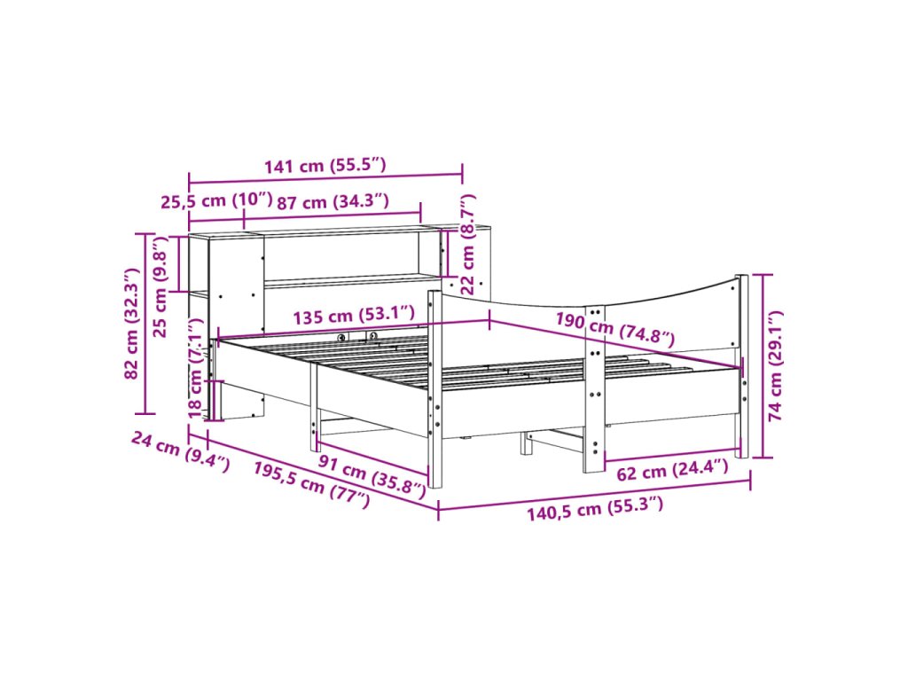 - Vhodná velikost matrace (matrace není součástí balení): 135 x 190 cm (Š x D)