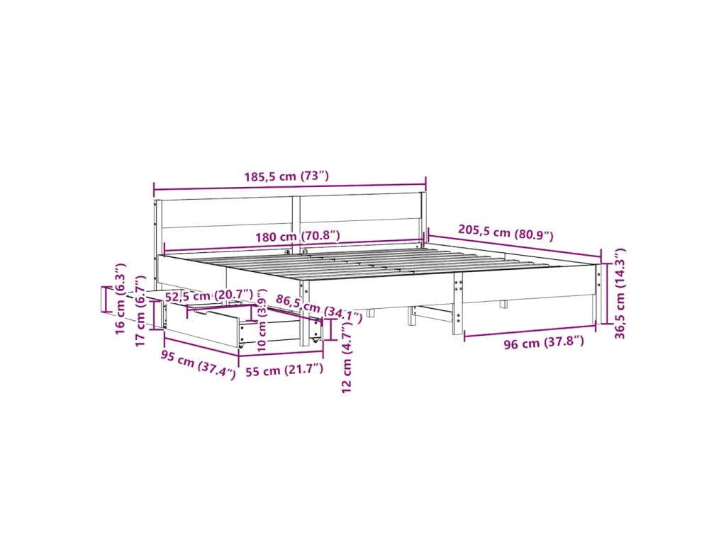 - Plně využijte prostor: Tento rám postele je vybaven dvěma zásuvkami, které poskytují úložný prostor pro uschování lůžkovin, sezónního oblečení a hraček.