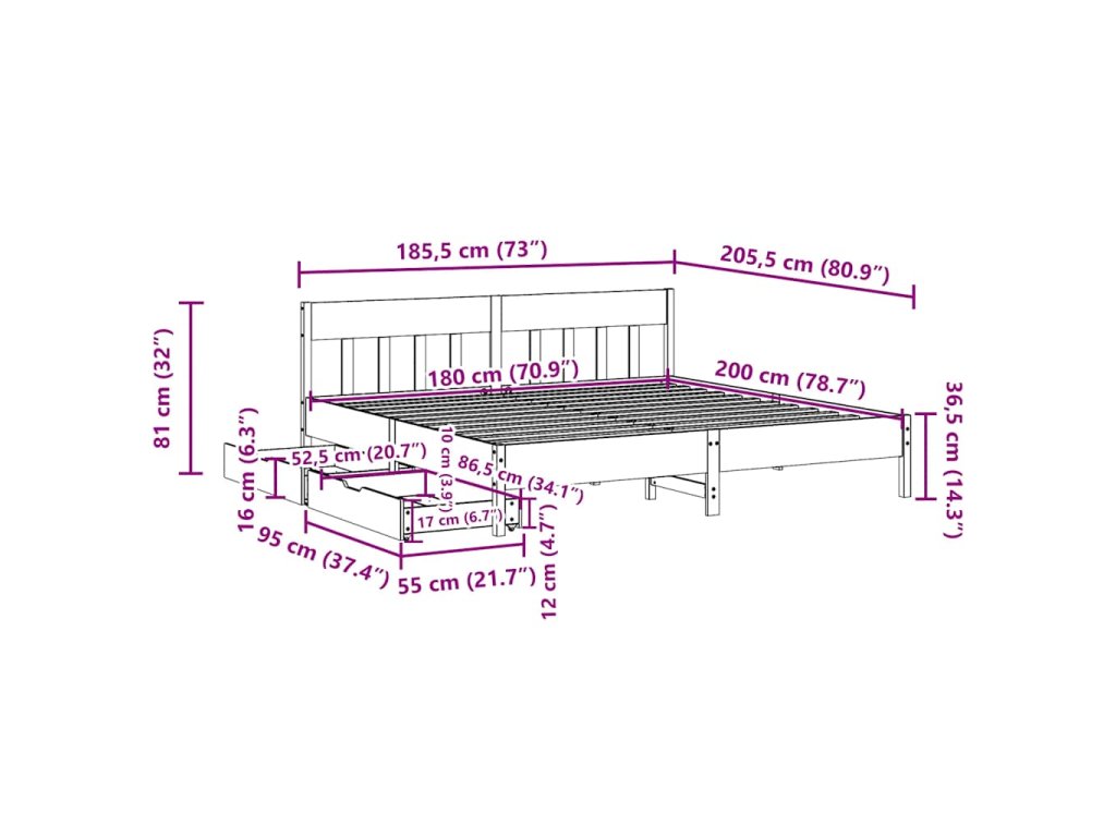 - Plně využijte prostor: Tento rám postele je vybaven dvěma zásuvkami, které poskytují úložný prostor pro uschování lůžkovin, sezónního oblečení a hraček.