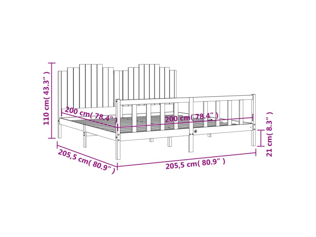 Postel bez matrace 200 x 200 cm masivní borovice 3192316