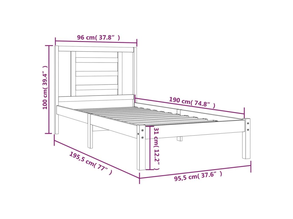 - Rozměry rámu postele: 195,5 x 95,5 x 31 cm (D x Š x V)