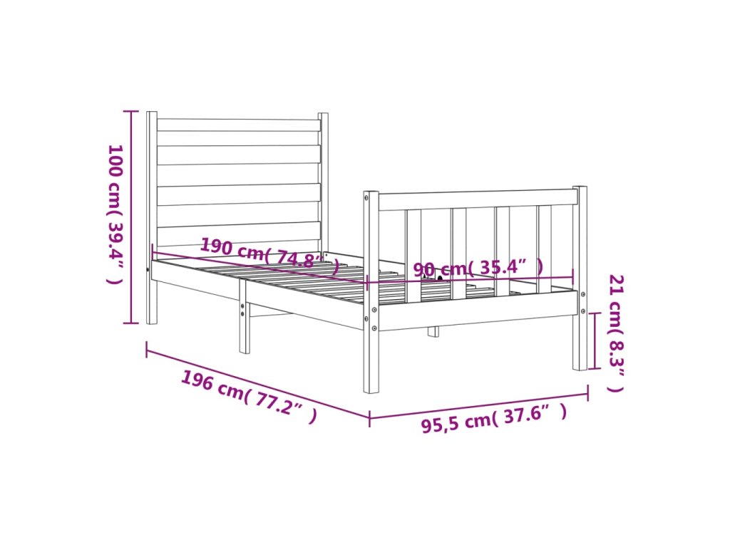 - Celkové rozměry postele: 196 x 95,5 x 100 cm (D x Š x V)