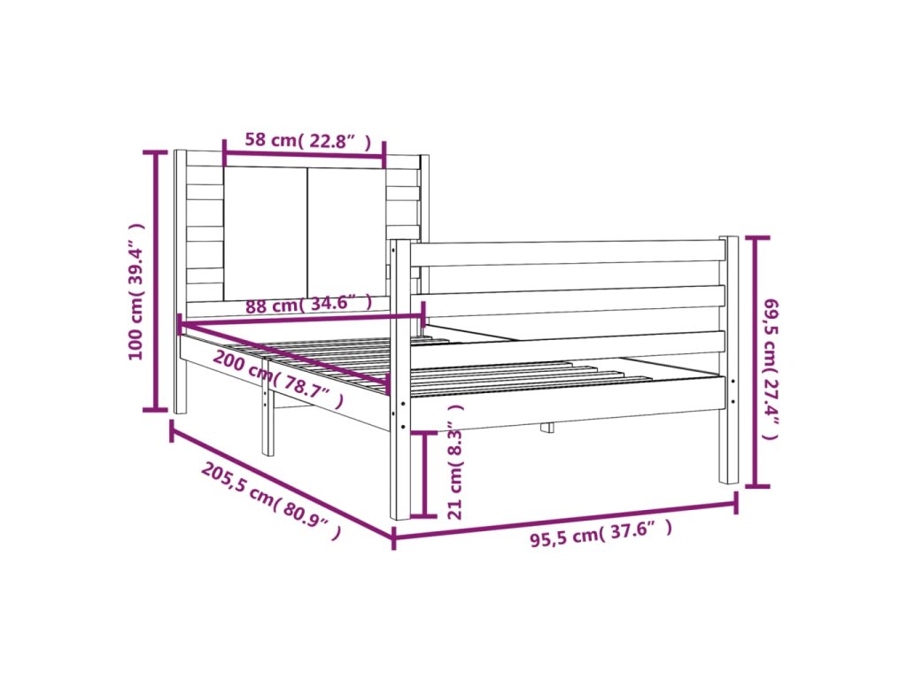 - Rozměry rámu postele: 205,5 x 95,5 x 69,5 cm (D x Š x V)