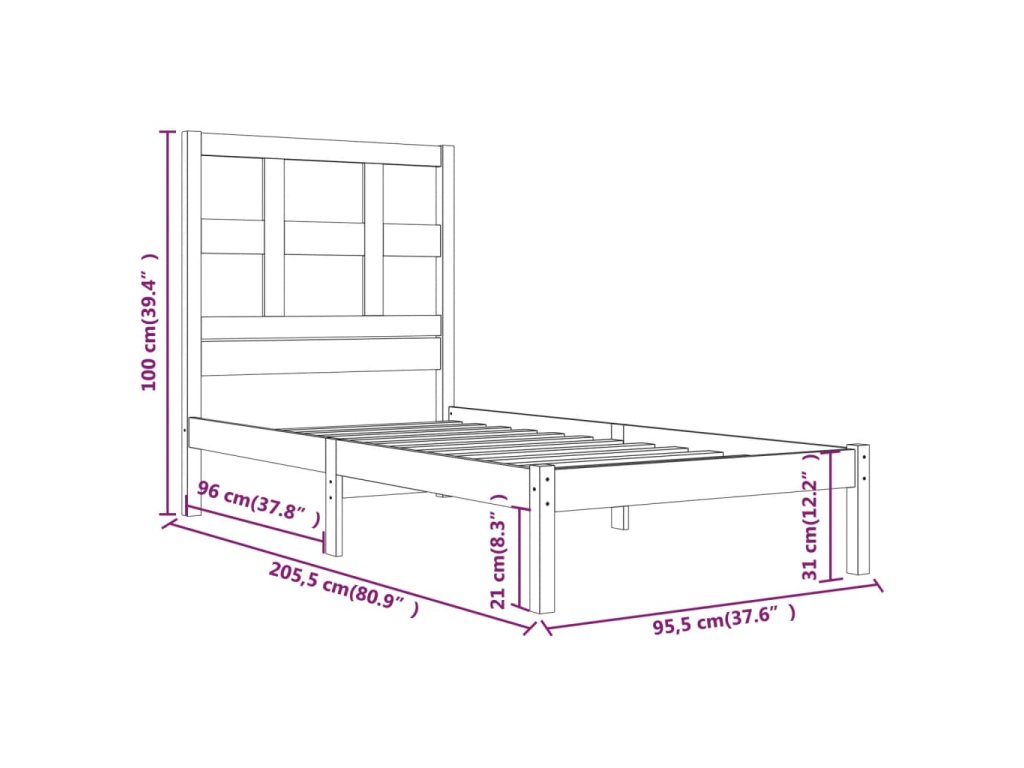 - Rozměry rámu postele: 205,5 x 95,5 x 31 cm (D x Š x V)