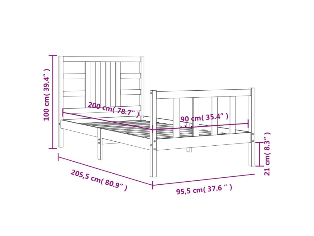 - Celkové rozměry postele: 205,5 x 95,5 x 100 cm (D x Š x V)