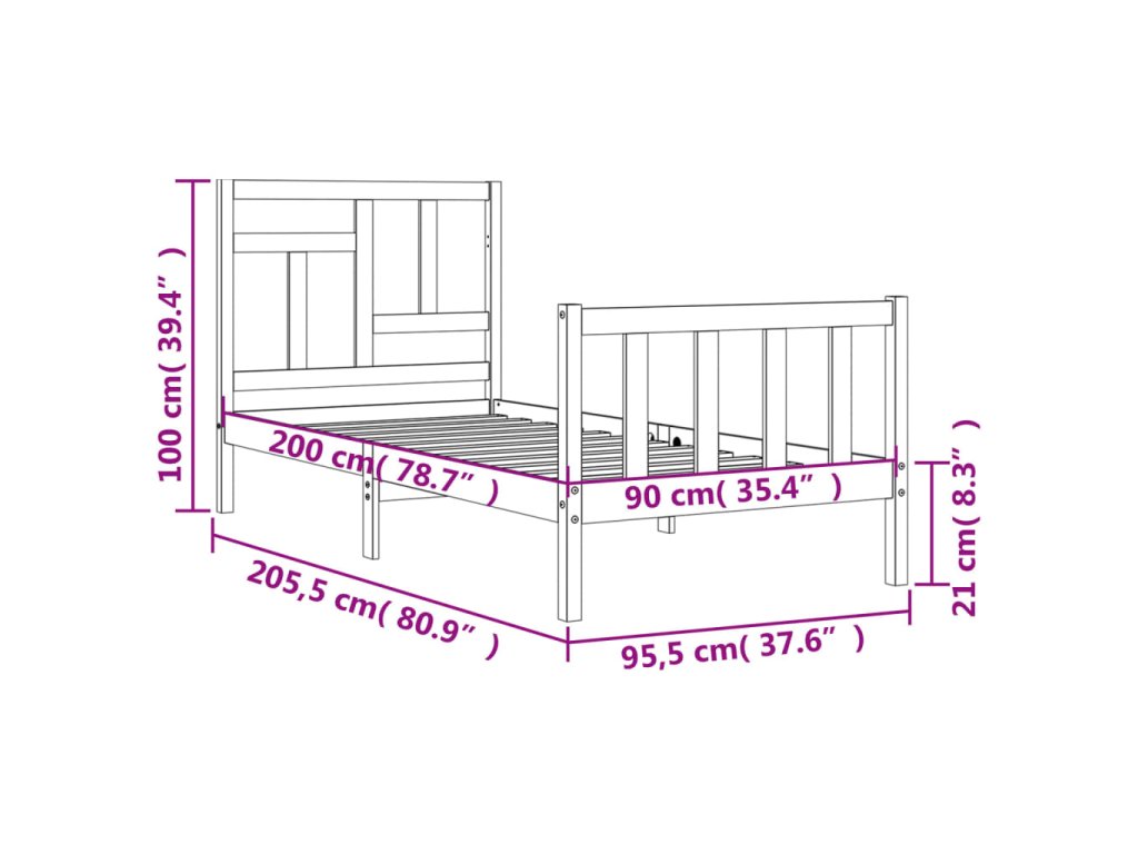 - Celkové rozměry postele: 205,5 x 95,5 x 100 cm (D x Š x V)
