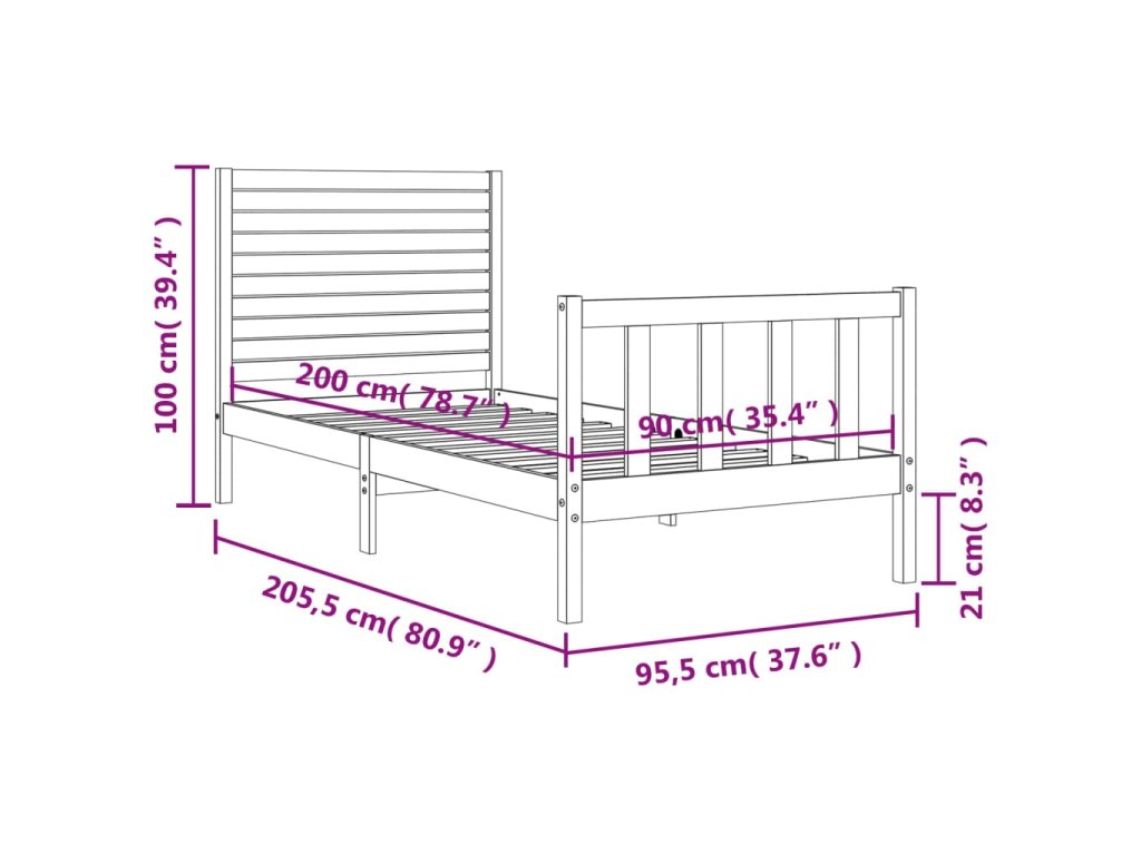 - Celkové rozměry postele: 205,5 x 95,5 x 100 cm (D x Š x V)