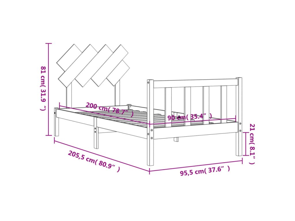 - Celkové rozměry postele: 205,5 x 95,5 x 81 cm (D x Š x V)