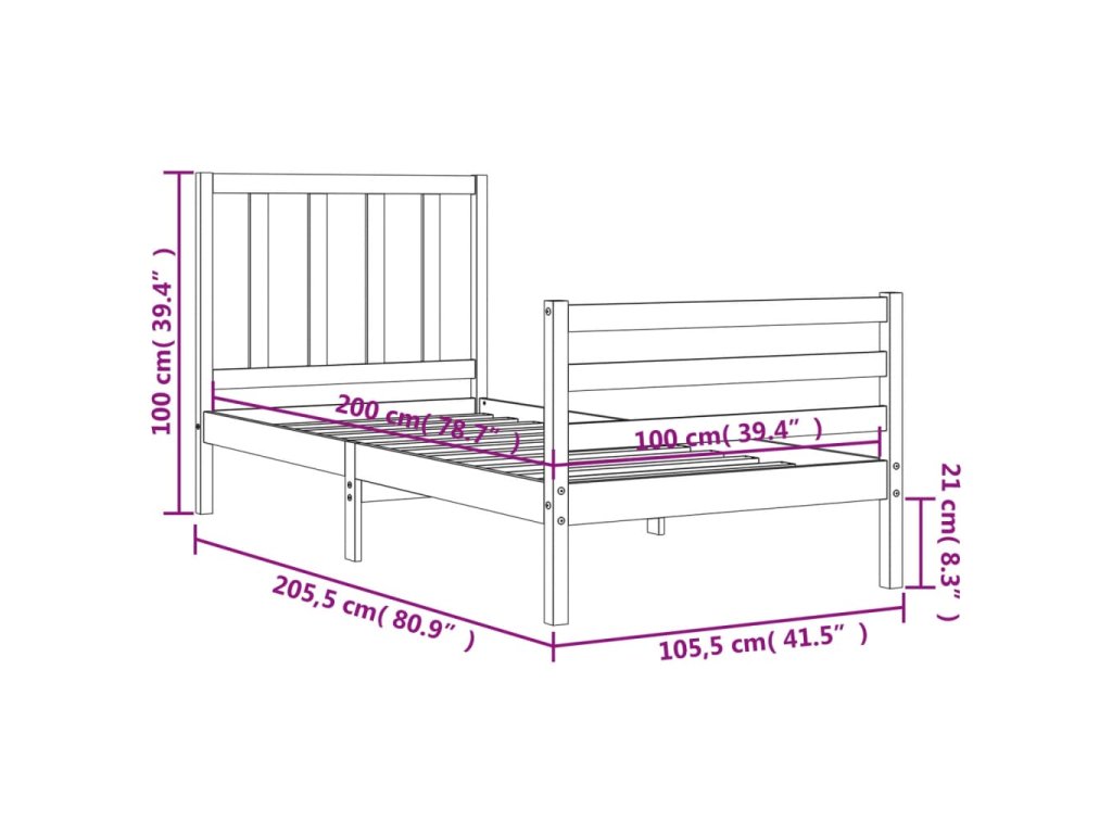 - Celkové rozměry postele: 205,5 x 105,5 x 100 cm (D x Š x V)