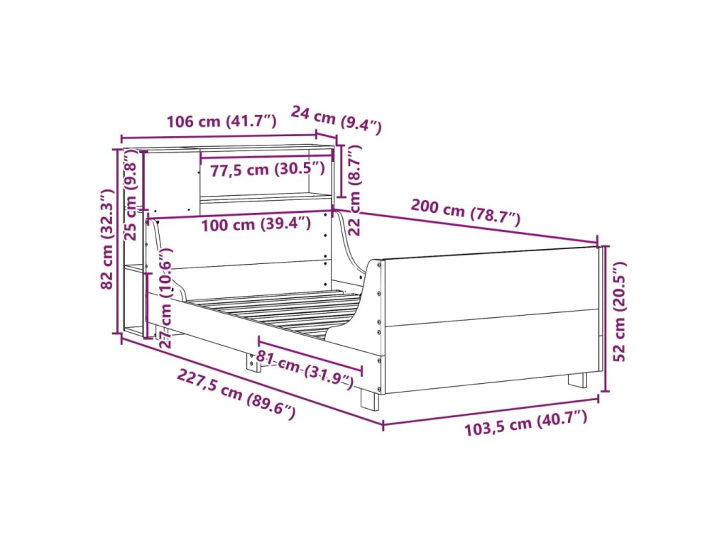 - Celkové rozměry: 227,5 x 106 x 82 cm (D x Š x V)