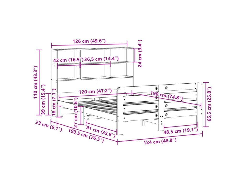 - Vhodné rozměry matrace: 120 x 190 cm (Š x D) (matrace není součástí balení)