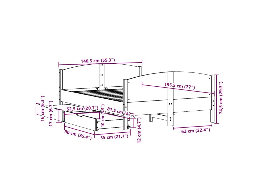 - Plně využijte prostor: Tento rám postele je vybaven dvěma zásuvkami, které poskytují úložný prostor pro uschování lůžkovin, sezónního oblečení a hraček.