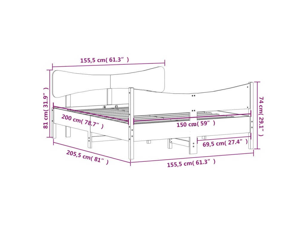 Postel bez matrace bílá 150 x 200 cm masivní borovice 3216379