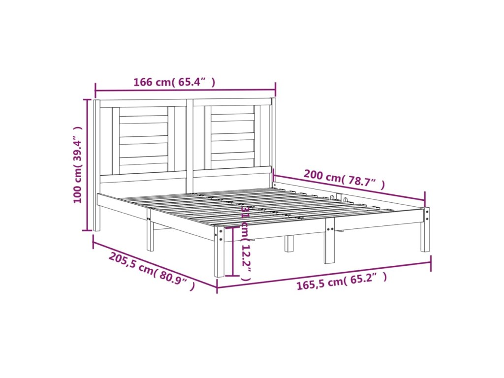 - Rozměry rámu postele: 205,5 x 165,5 x 31 cm (D x Š x V)