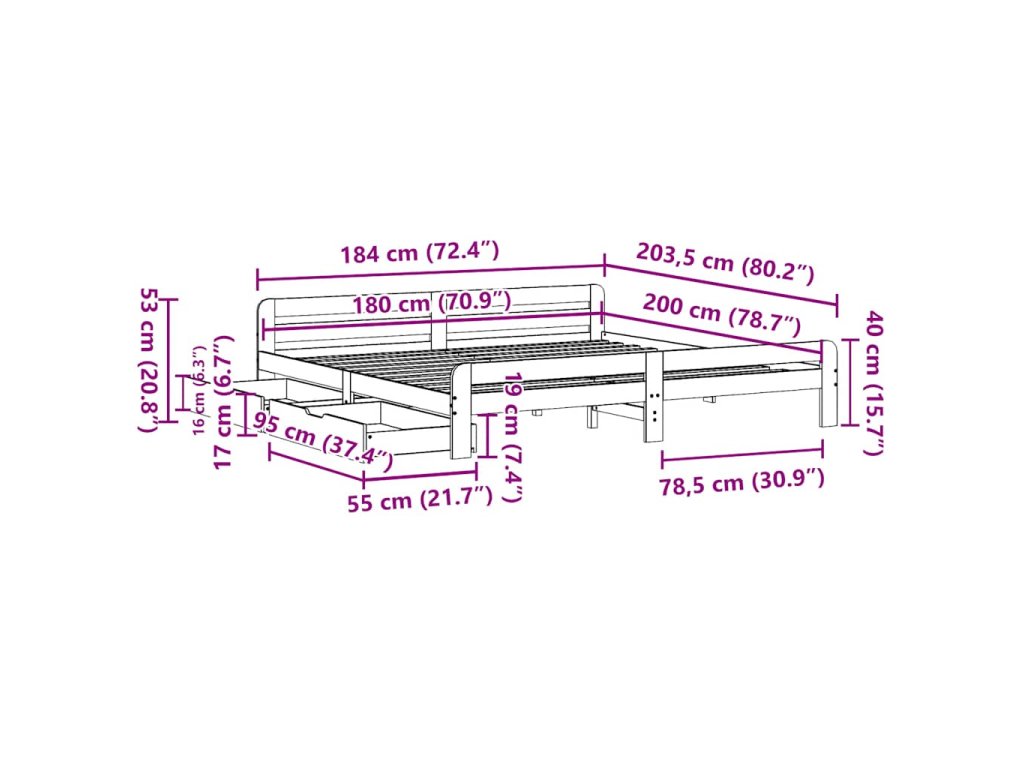 - Plně využijte prostor: Tato základna postele je vybavena dvěma zásuvkami, které poskytují úložný prostor pro uschování lůžkovin, sezónního oblečení a hraček.