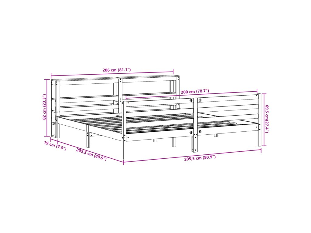 Postel bez matrace bílá 200 x 200 cm masivní borovice 3305835