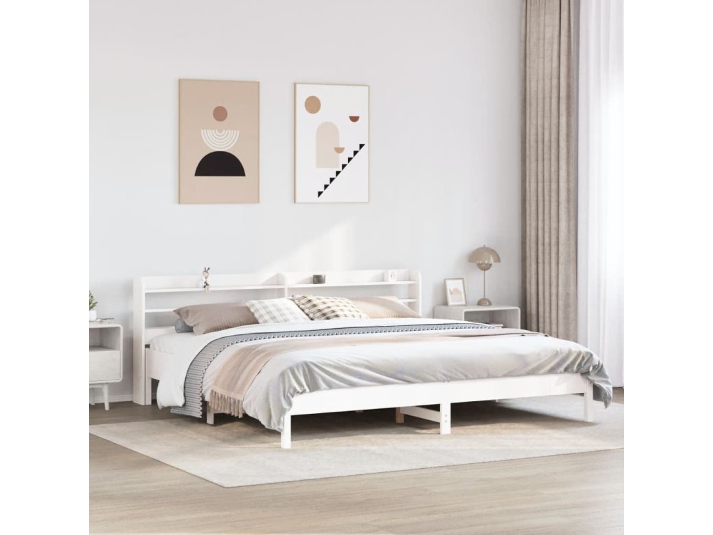 Postel bez matrace bílá 200 x 200 cm masivní borovice 3306877