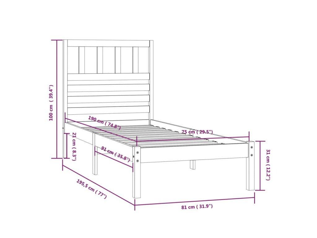 - Tento rám postele je vhodný pro matrace o rozměrech 75 x 190 cm (2FT6 Small Single)