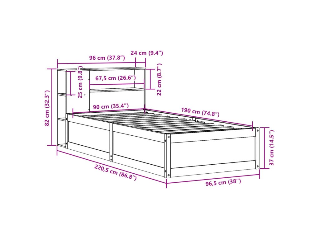 - Rozměry čela postele: 96 x 24 x 82 cm (D x Š x V)