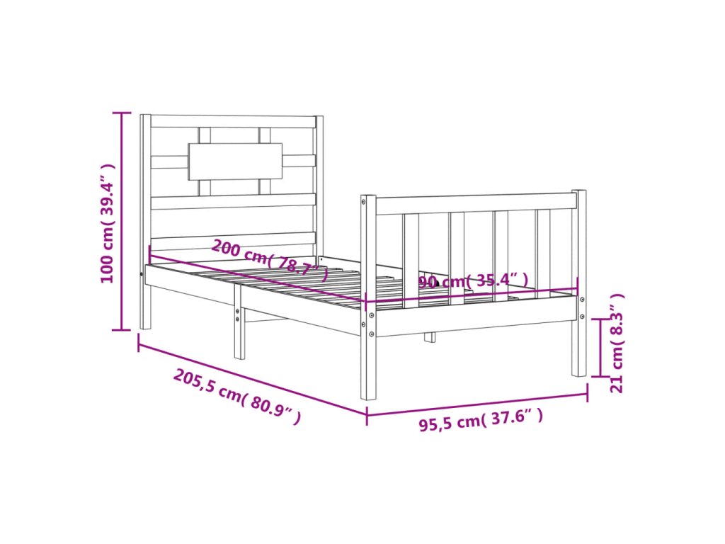 - Celkové rozměry postele: 205,5 x 95,5 x 100 cm (D x Š x V)