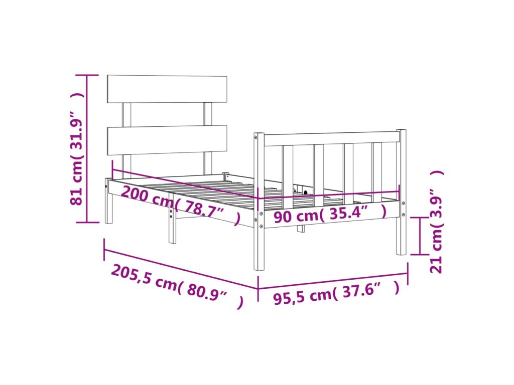 - Celkové rozměry postele: 205,5 x 95,5 x 81 cm (D x Š x V)