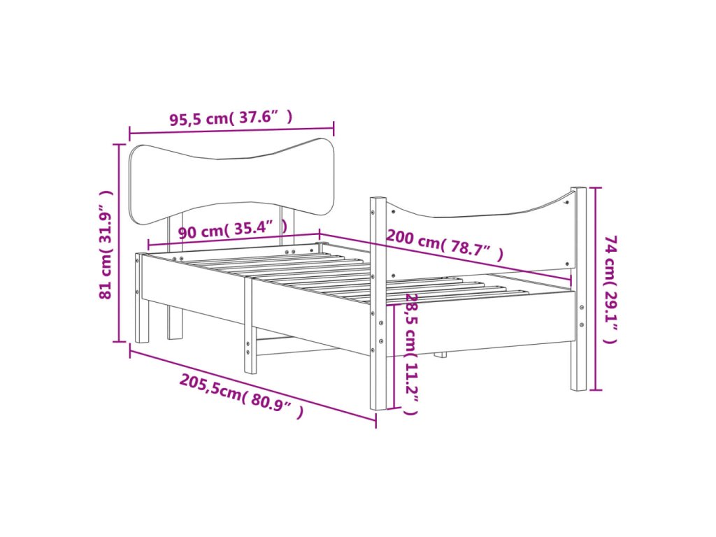 Postel bez matrace bílá 90 x 200 cm masivní borovice 3216391