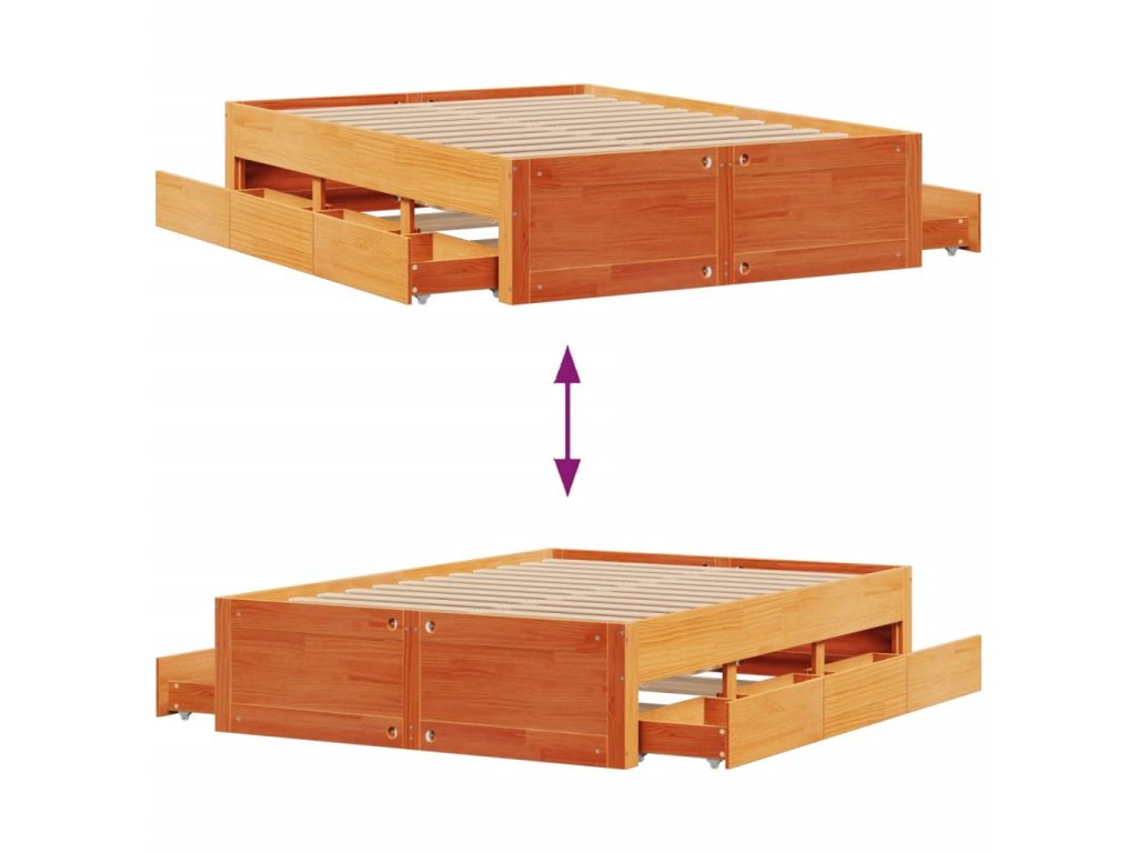 Postel bez matrace se zásuvkami hnědá 140x200 cm masiv borovice 3308806