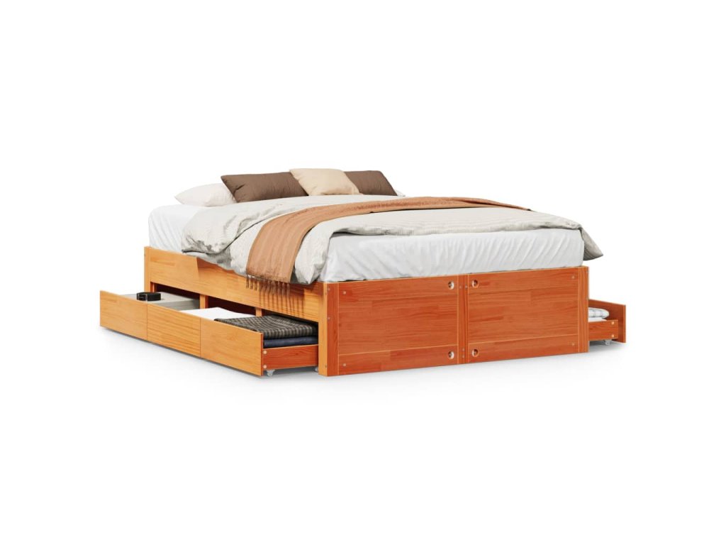 Postel bez matrace se zásuvkami hnědá 150x200 cm masiv borovice 3308803