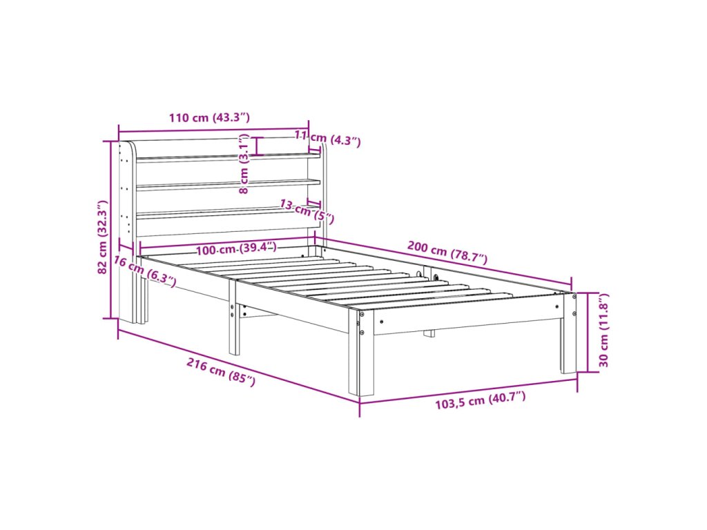 Postel bez matrace voskově hnědá 100 x 200 cm masivní borovice 3306804