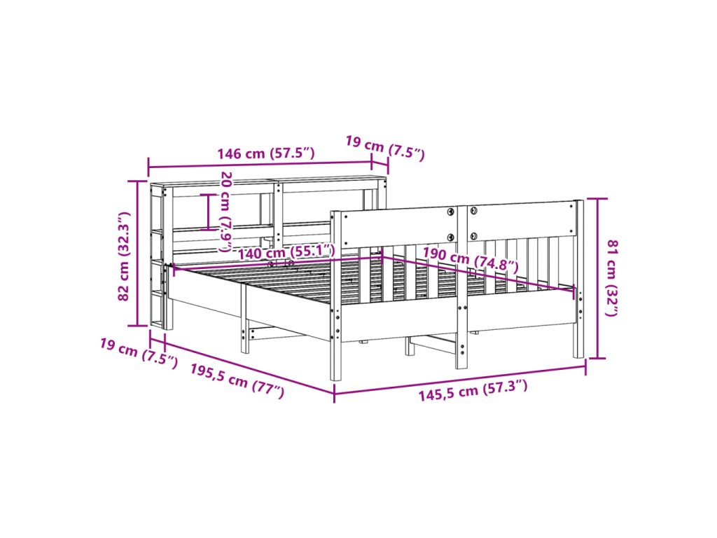 Postel bez matrace voskově hnědá 140 x 190 cm masivní borovice 3306278