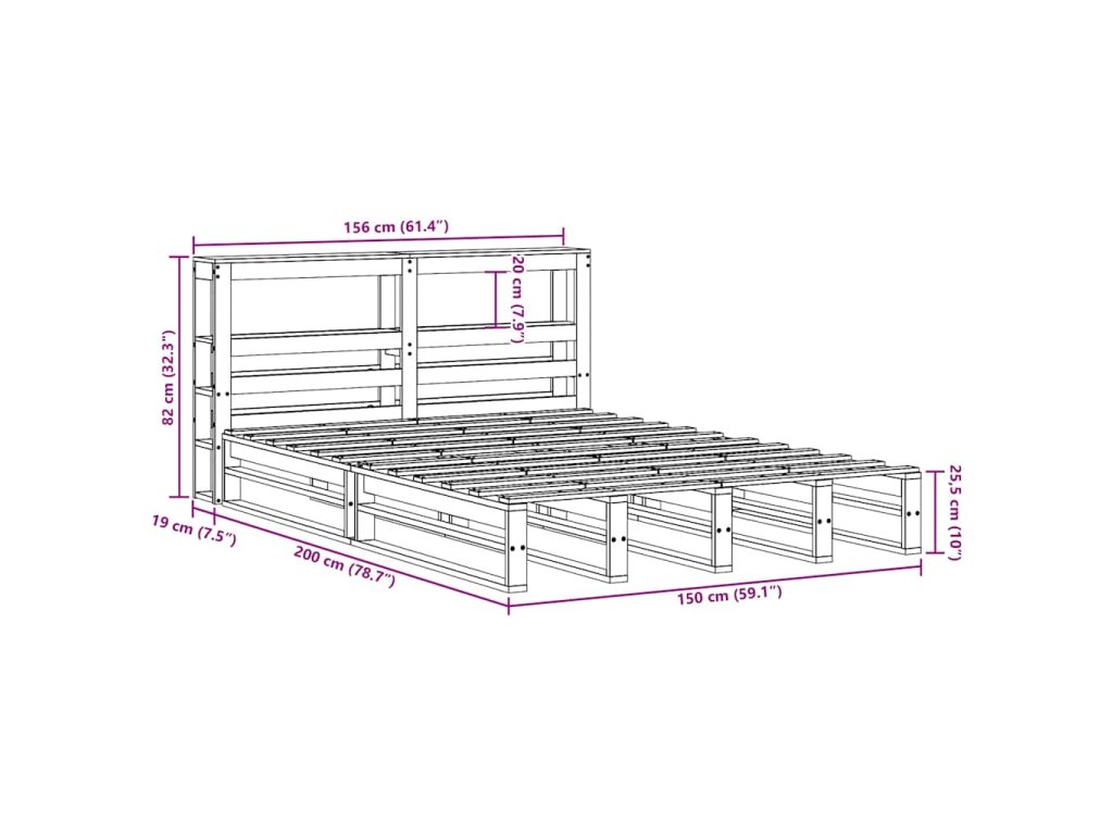 - Rozměry čela postele: 156 x 19 x 82 cm (D x Š x V)