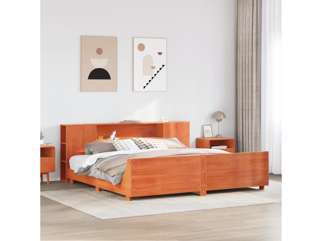 Postel bez matrace voskově hnědá 180 x 200 cm masivní borovice 3323643