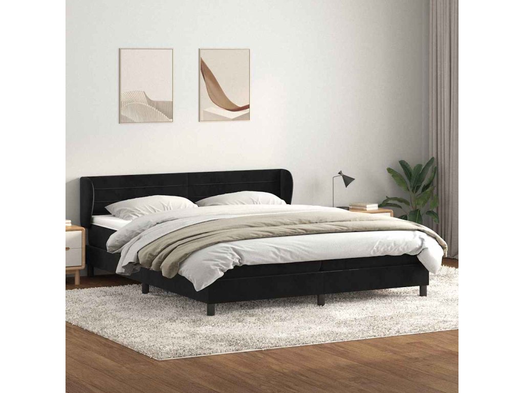Postel Box Spring s matracemi černá 180x210 cm samet 3317621