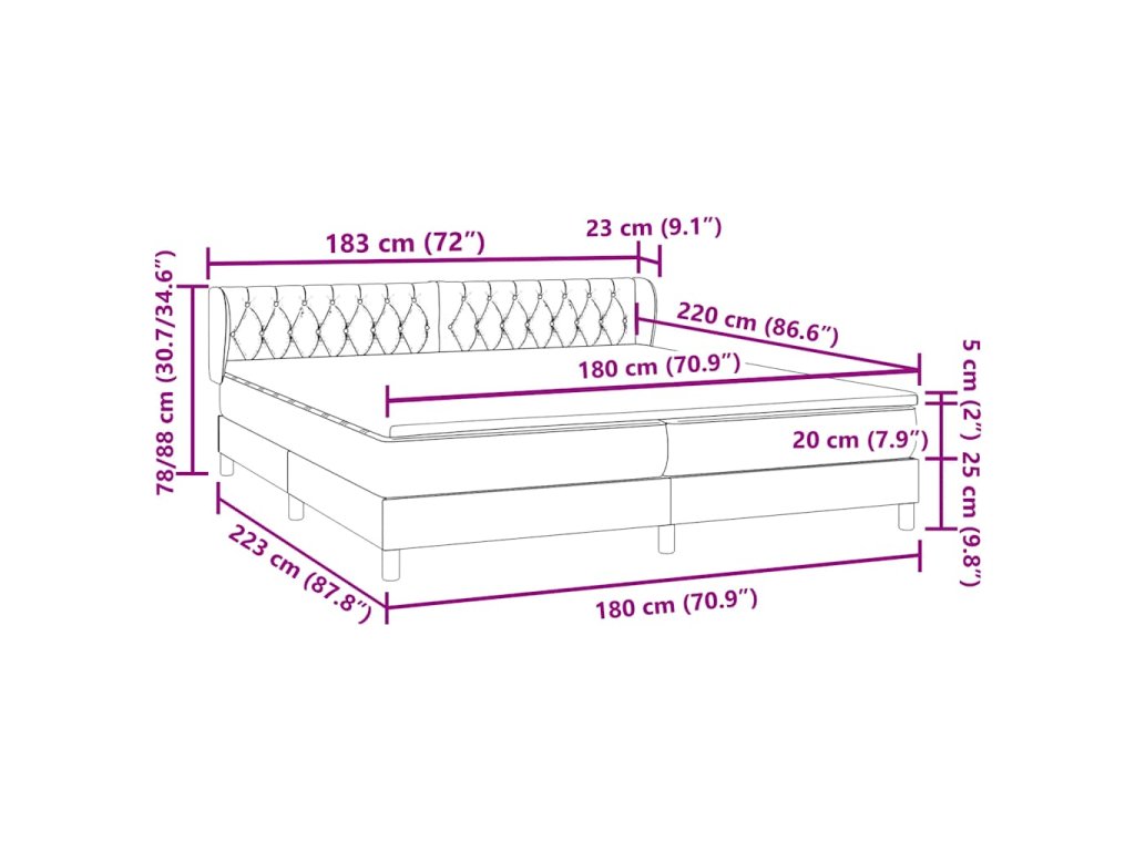 - Rozměry: 223 x 183 x 78/88 cm (d x š x v)
