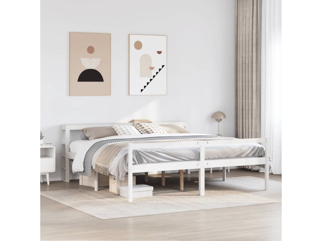 Postel s čelem pro seniory bílá 200 x 200 cm masivní borovice 3305874