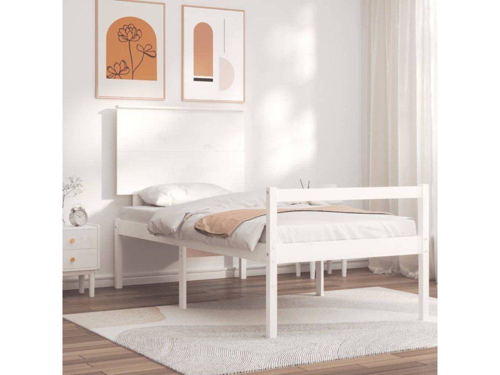 Postel s čelem pro seniory bílý 90x200 cm masivní dřevo 3195467