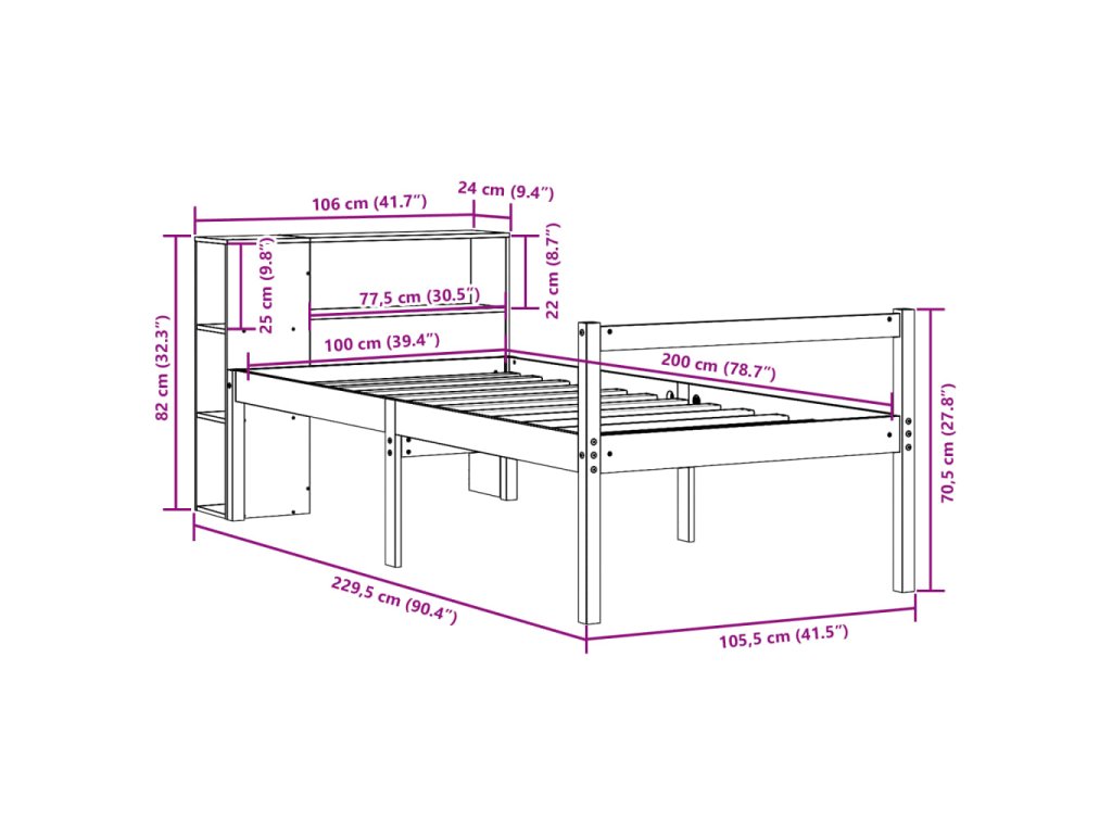 Postel s knihovnou bez matrace 100 x 200 cm masivní borovice 3321994