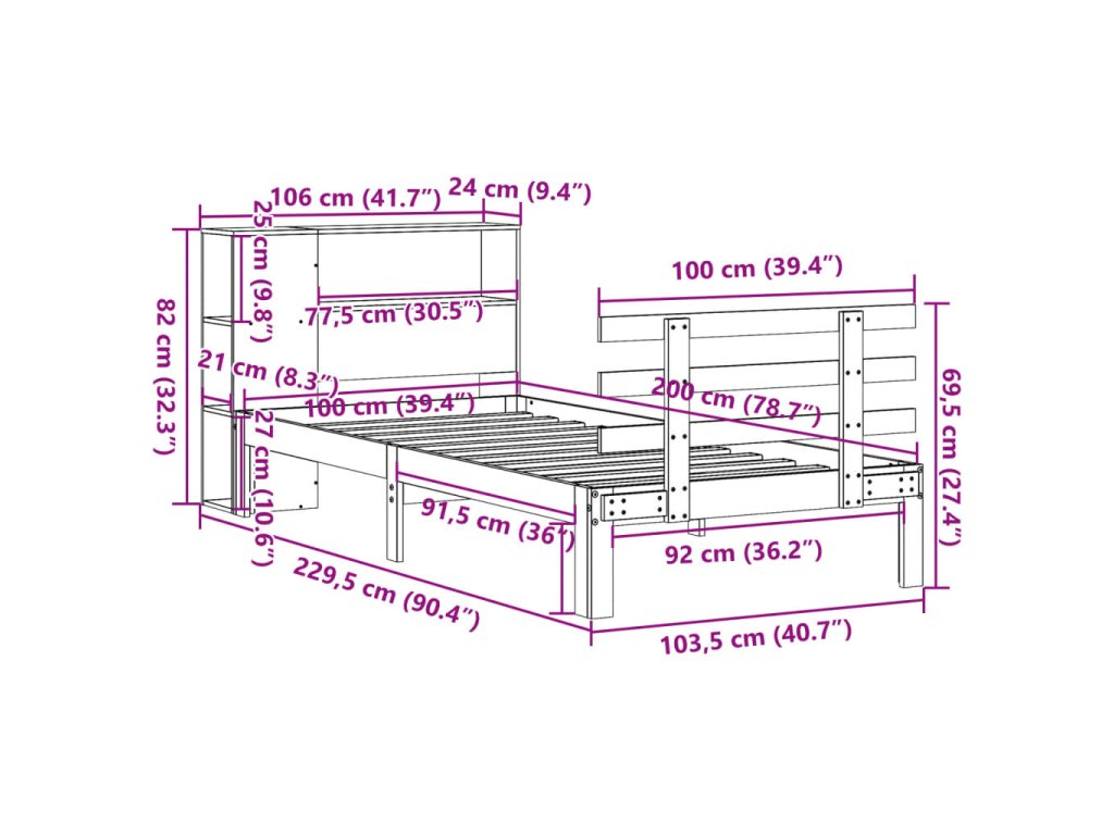 Postel s knihovnou bez matrace 100 x 200 cm masivní borovice 3322735