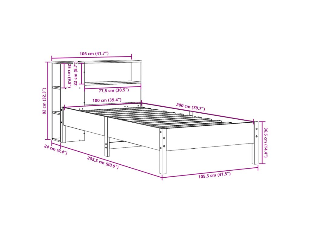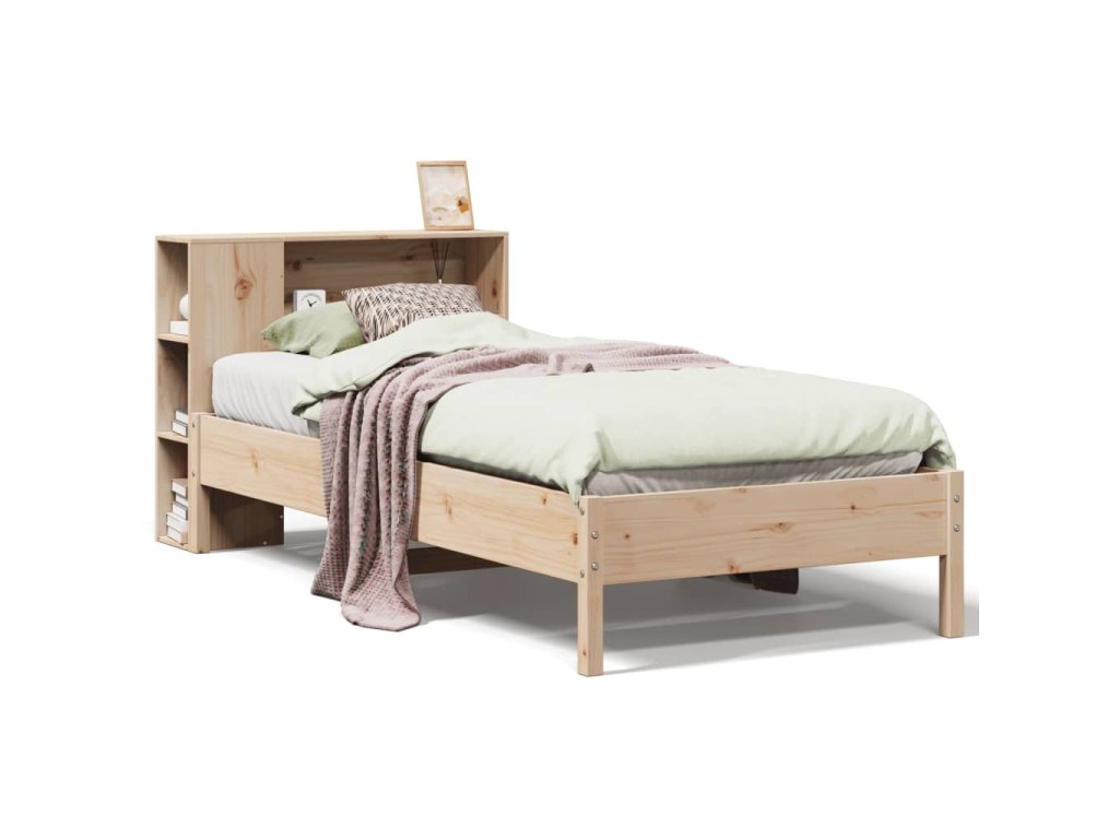 Postel s knihovnou bez matrace 100 x 200 cm masivní borovice 3322846