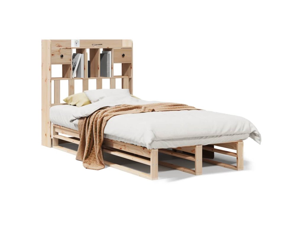 Postel s knihovnou bez matrace 100 x 200 cm masivní borovice 3323953