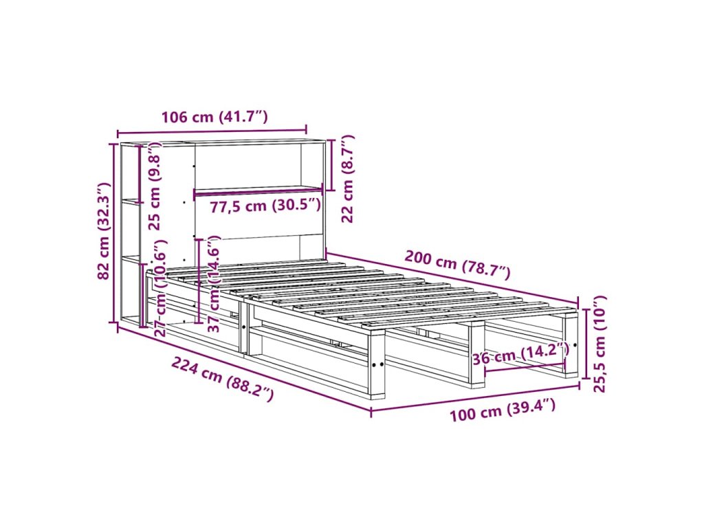 - Celkové rozměry: 200 x 100 x 25,5 cm (D x Š x V)