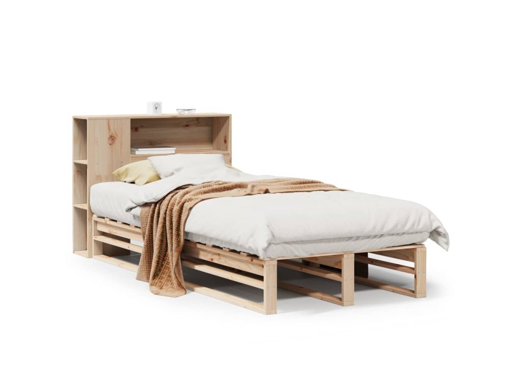 Postel s knihovnou bez matrace 100 x 200 cm masivní dřevo 3323902