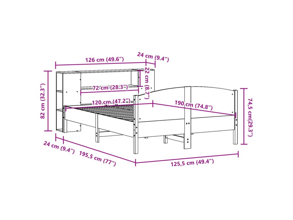 Postel s knihovnou bez matrace 120 x 190 cm masivní borovice 3323077