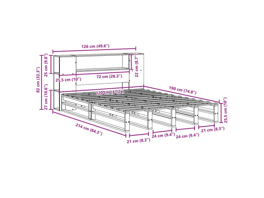 Postel s knihovnou bez matrace 120 x 190 cm masivní dřevo 3323890