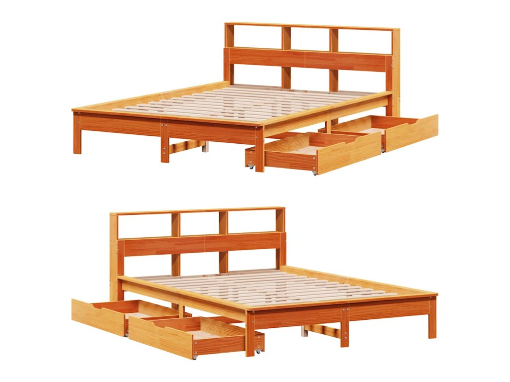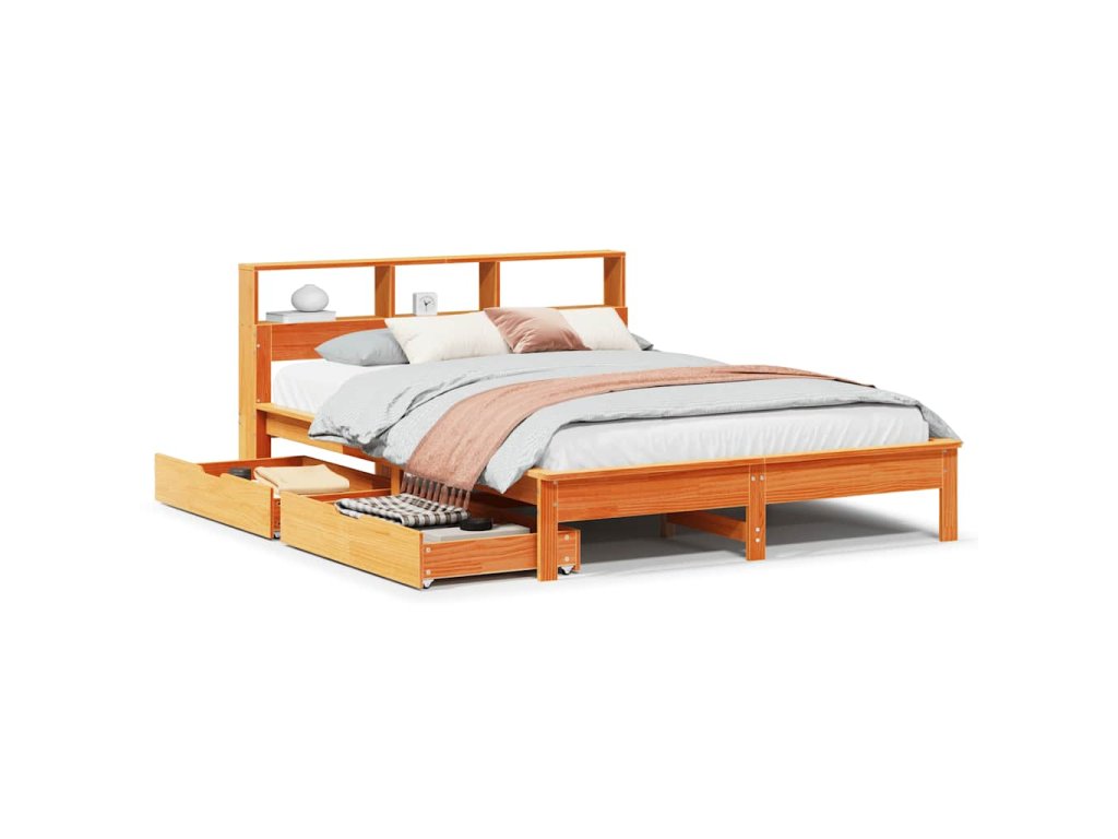 Postel s knihovnou bez matrace 135 x 190 cm masivní borovice 3309826