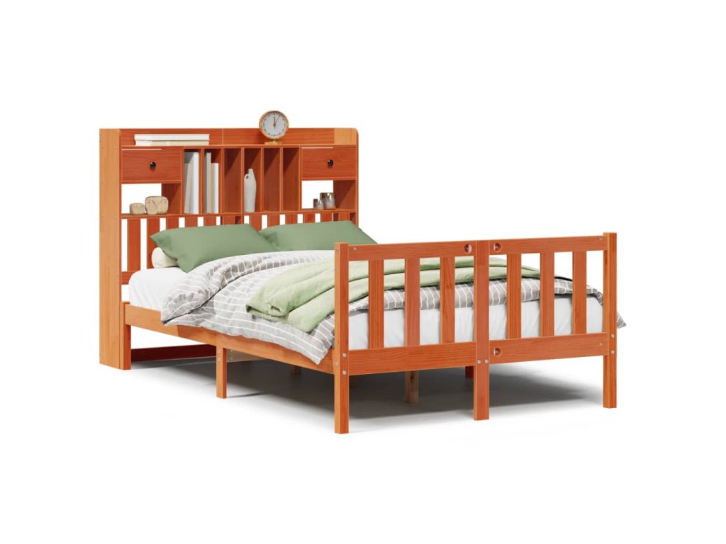 Postel s knihovnou bez matrace 135 x 190 cm masivní borovice 3321756
