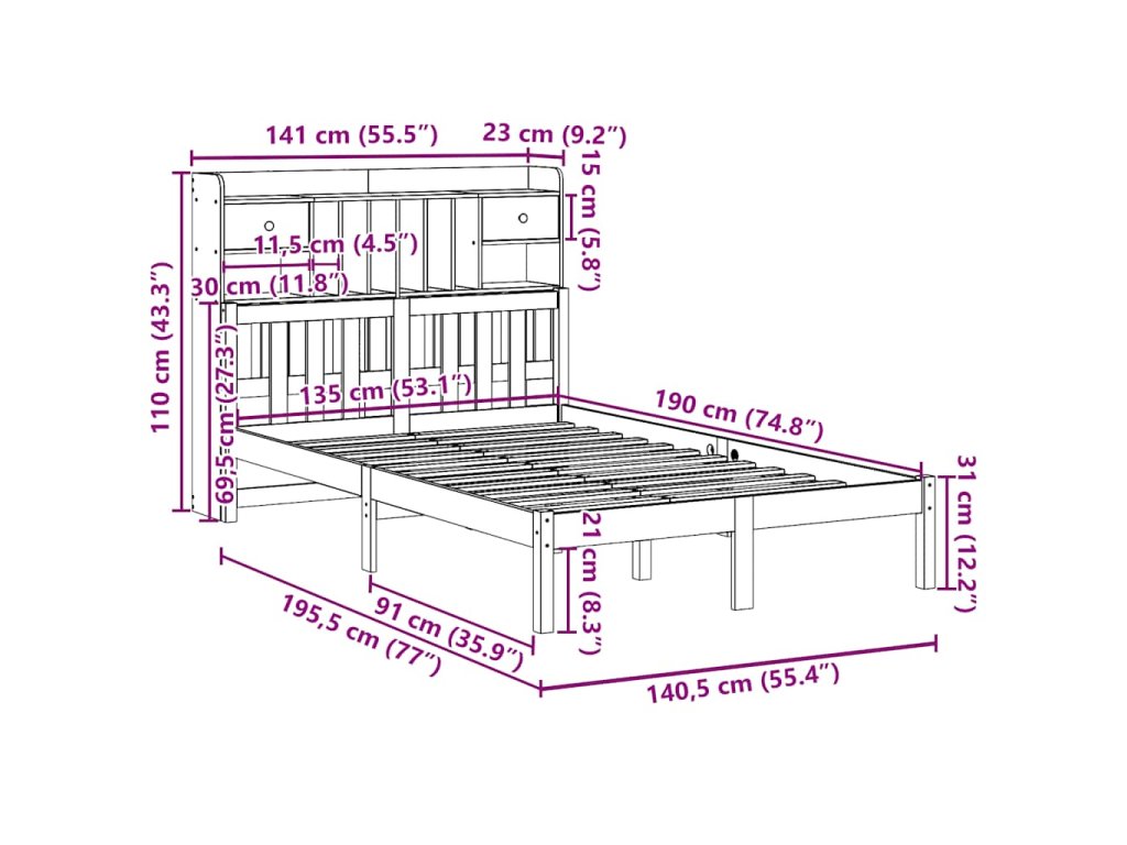 Postel s knihovnou bez matrace 135 x 190 cm masivní borovice 3322331