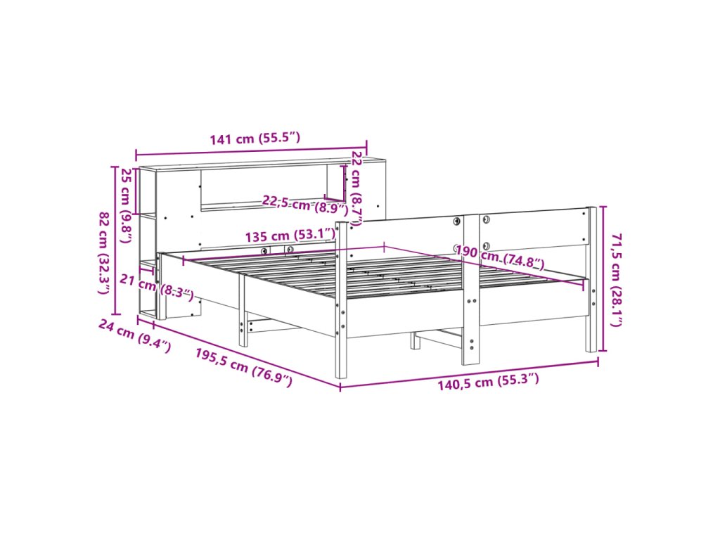 Postel s knihovnou bez matrace 135 x 190 cm masivní borovice 3322957