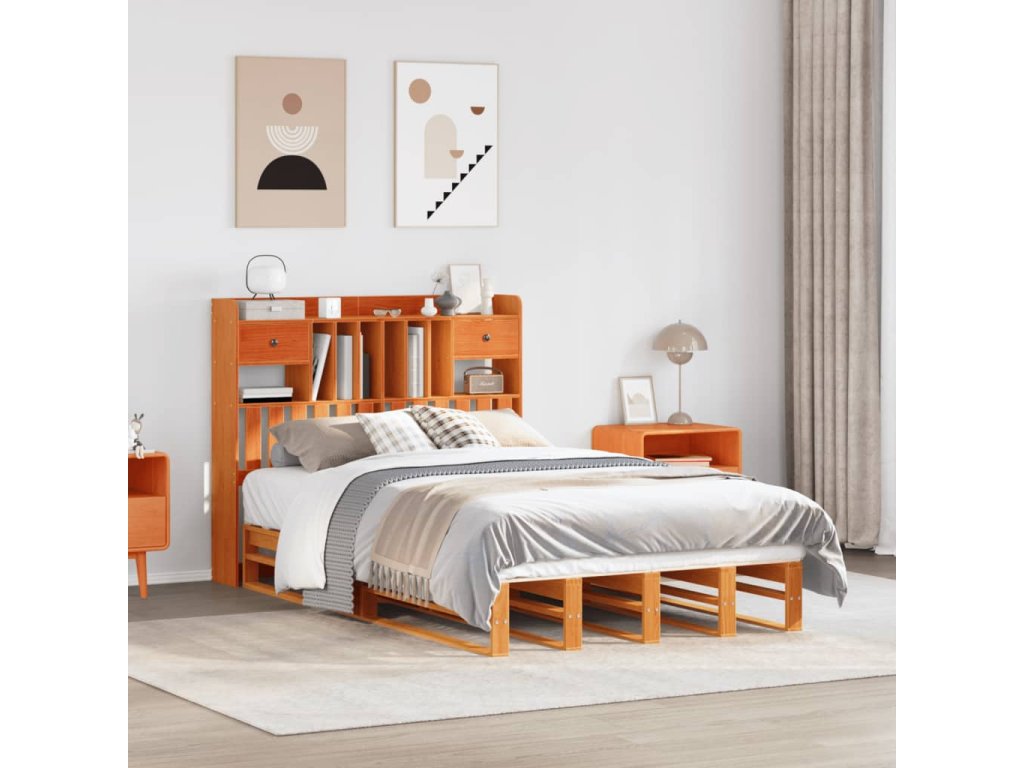 Postel s knihovnou bez matrace 135 x 190 cm masivní borovice 3323985