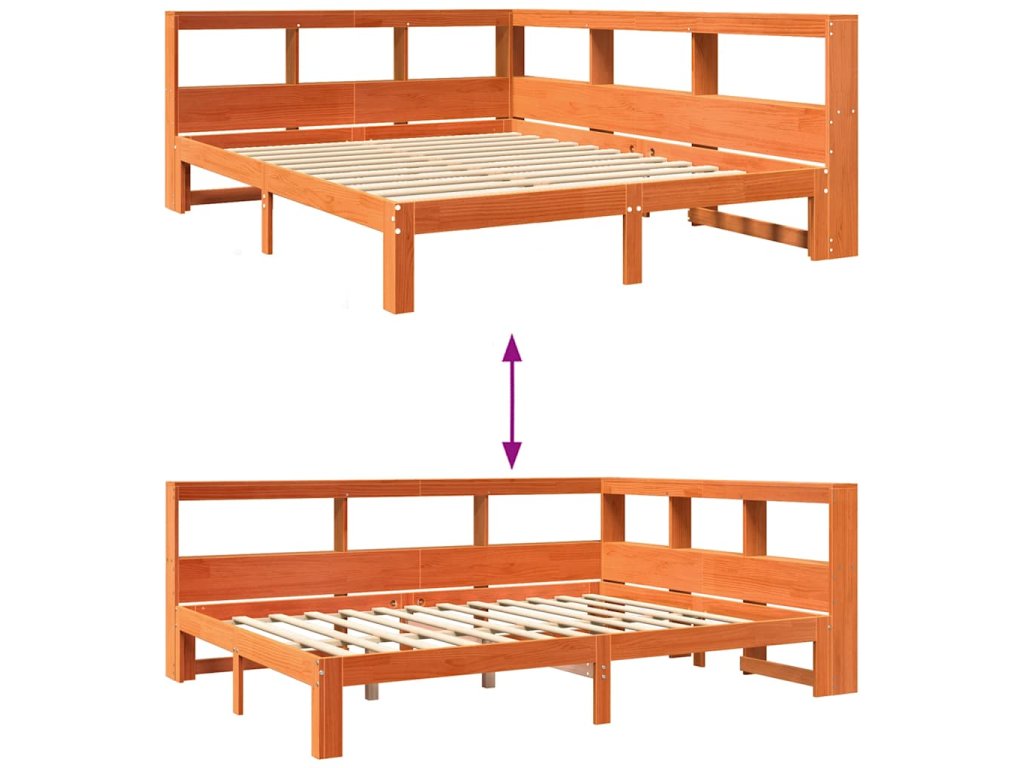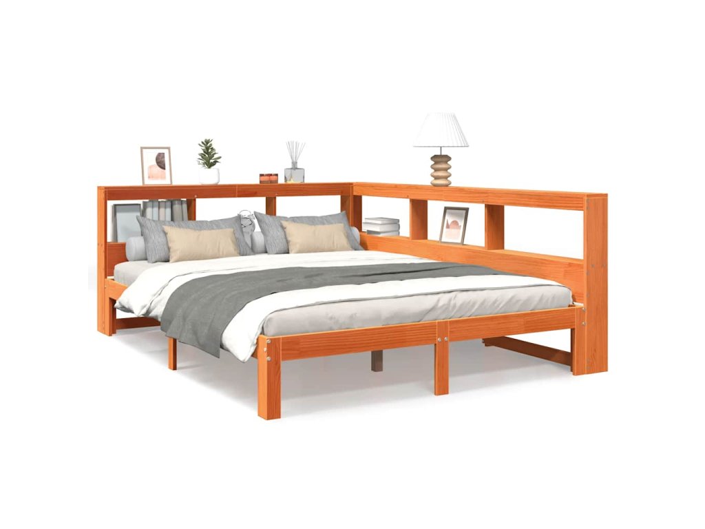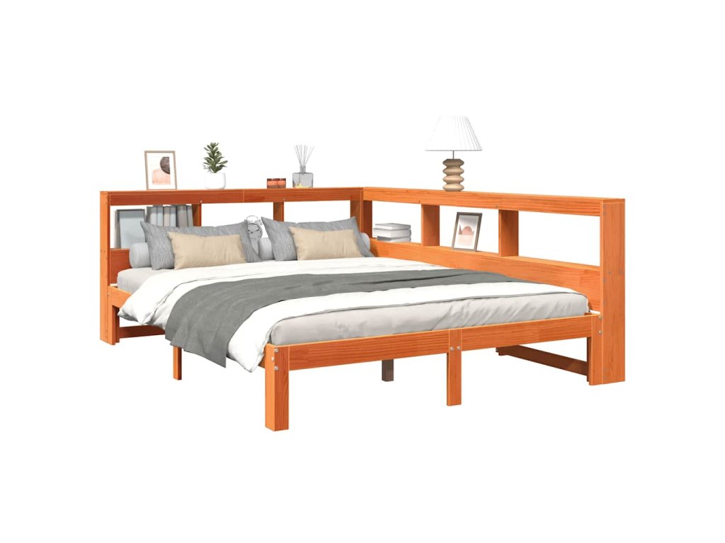 Postel s knihovnou bez matrace 135 x 190 cm masivní borovice 3324399